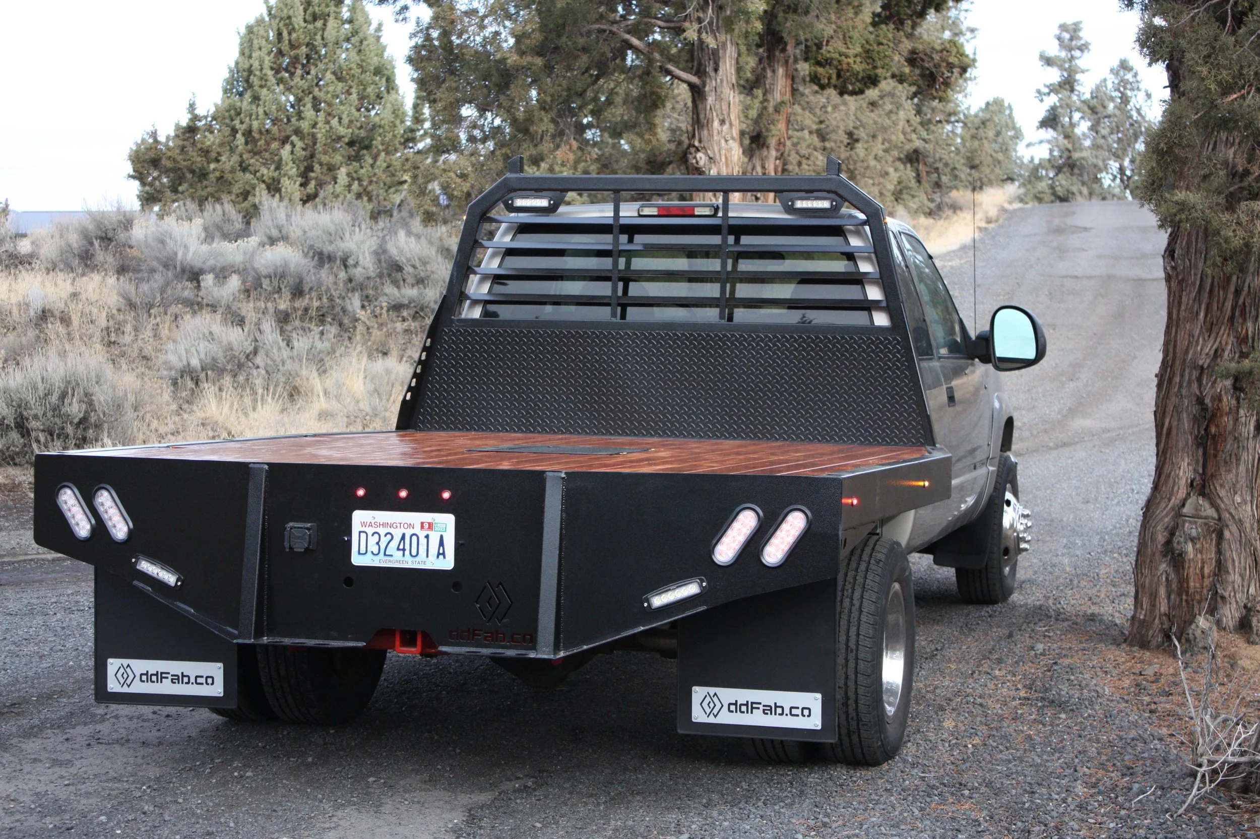 Many truck bed material options such as diamond plate, wood and standard steel plate.